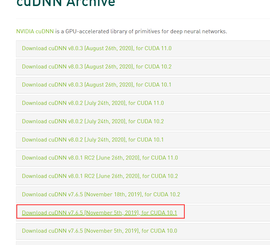 - 点开此链接下载 cuDNN7.6 版本:https://developer.nvidia.com/rdp/cudnn-archive#a-collapse51b