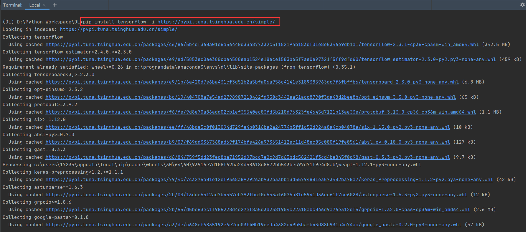 安装命令pip install tensorflow -i https://pypi.tuna.tsinghua.edu.cn/simple/