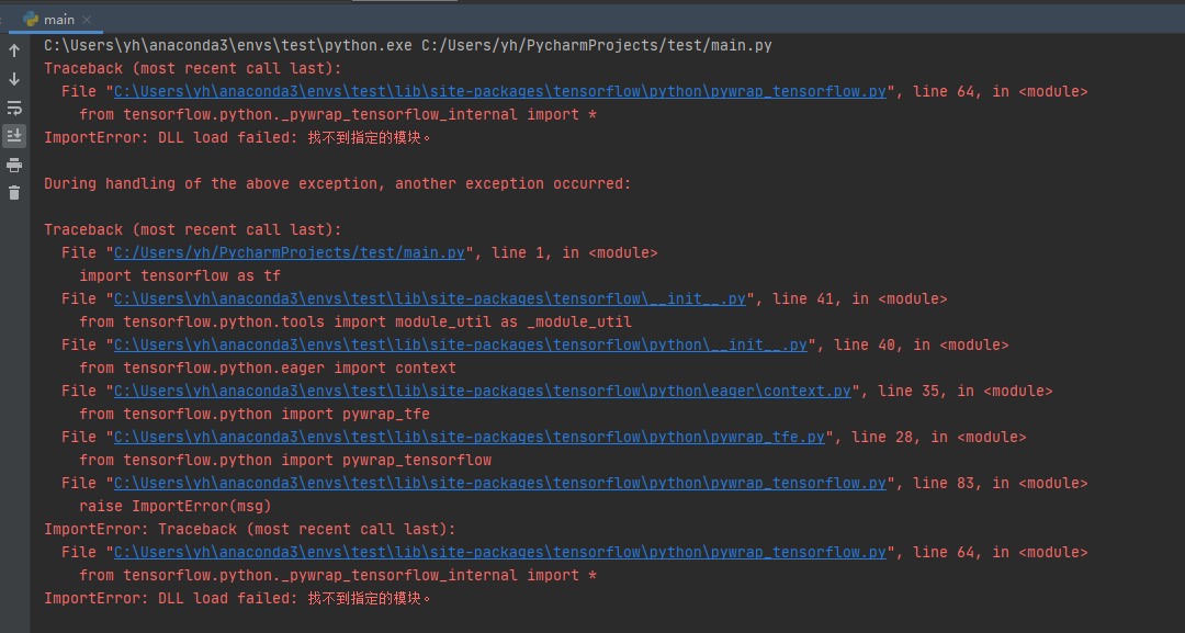 踩坑记录:(DLL load failed:找不到指定的模块)