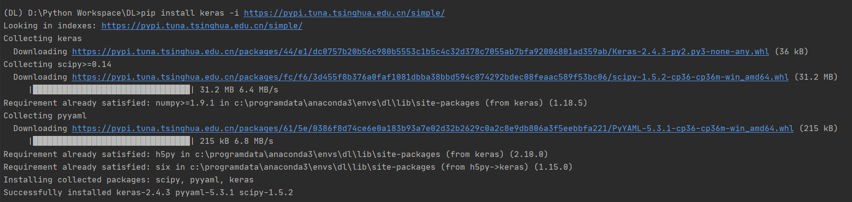 ,阿里镜像源命令:pip install keras -i https://mirrors.aliyun.com/pypi/simple